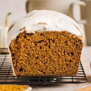 To Store: You can keep this pumpkin bread stored in a sealed, airtight container or wrapped in aluminum foil on the counter at room temp for up to a day or two, but make sure to refrigerate this bread after that and keep it for up to a week.
